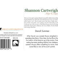 Shannon Cartwright is perhaps Alaska’s most prolific children’s books illustrator, having illustrated over 30 books, 8 of which she also wrote, for a total of 1.5 million books in print. She has spent most of her time in Alaska since 1972 living off the road system. From working a set net in Bristol Bay, to leading horsepack trips in the mountains of the Alaska Range to the Brooks Range, to personally exploring the wilderness, she knows Alaska and her illustrations and writings reflect that.