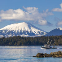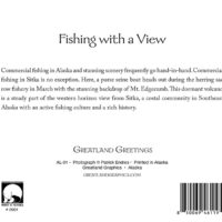 This is the first card in our new Alaska Lifestyle series of Greatland Greetings cards. It depicts a small commercial fishing vessel heading out in the waters near Sitka, with Mt. Edgecumbe in the background.