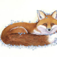 Early in her life in Alaska, Shannon spent a summer in the community of Hope. During that time, she had many encounters in the forest and coastal areas. This painting was inspired by her encounters with a fox and the many blooms of the state flower, the forget-me-not, that she saw that summer.