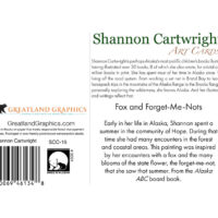 Shannon Cartwright is perhaps Alaska’s most prolific children’s books illustrator, having illustrated over 30 books, 8 of which she also wrote, for a total of 1.5 million books in print. She has spent most of her time in Alaska since 1972 living off the road system. From working a set net in Bristol Bay, to leading horsepack trips in the mountains of the Alaska Range to the Brooks Range, to personally exploring the wilderness, she knows Alaska and her illustrations and writings reflect that.