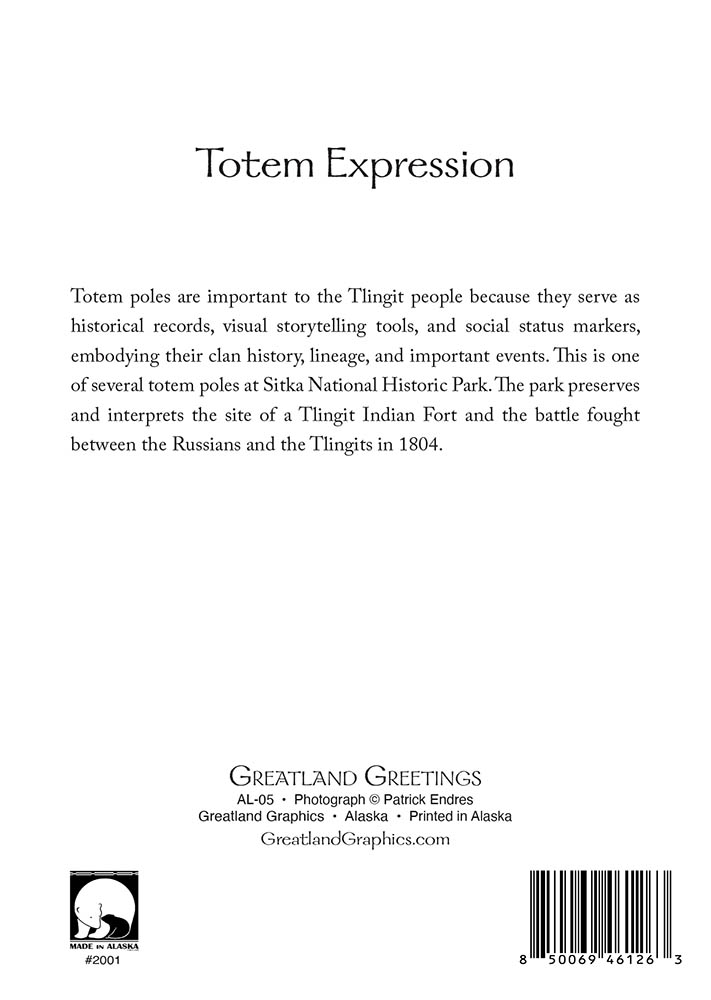 Totem poles are important to the Tlingit people because they serve as historical records, visual storytelling tools, and social status markers, embodying their clan history, lineage, and important events. This is one of several totem poles at Sitka National Historic Park. The park preserves and interprets the site of a Tlingit Indian Fort and the battle fought between the Russians and the Tlingits in 1804.